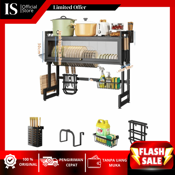 Rak Piring Wastafel Tertutup Minimalis Modern Lemari Dapur Kaca Stainless Steel