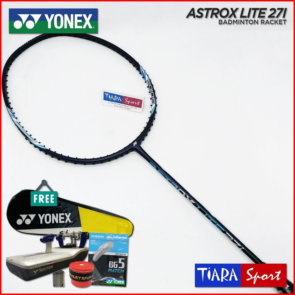 Raket Yonex Astrox Lite 27i - Black Light Blue - 5u Badminton Racket Free Senar Tas Grip