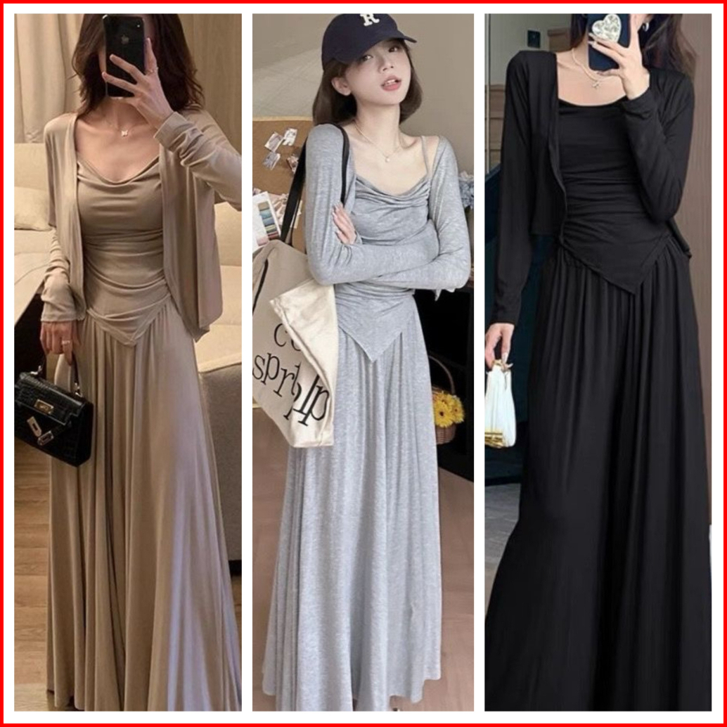 Susana Mall Set Wanita Oneset Lengan Panjang Knit Setelan Casual Basic Strecth M623