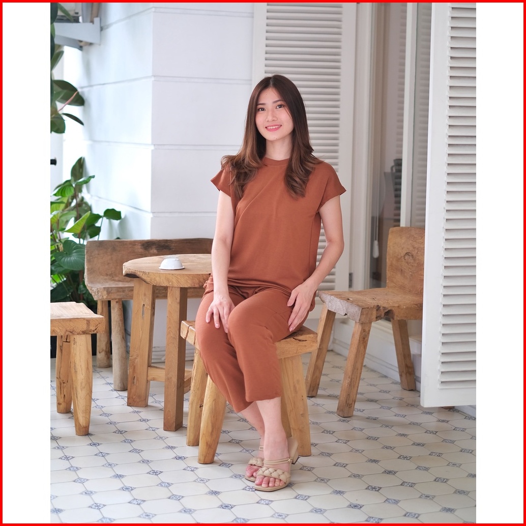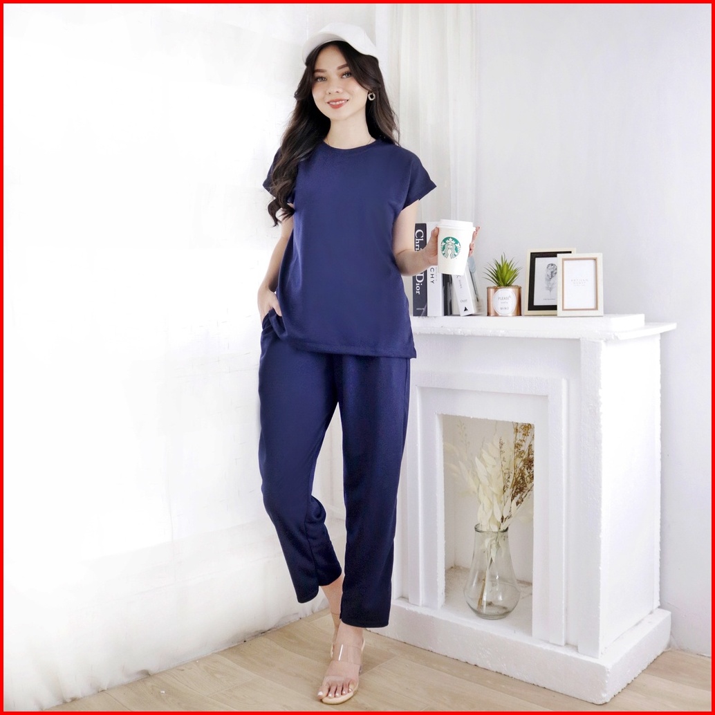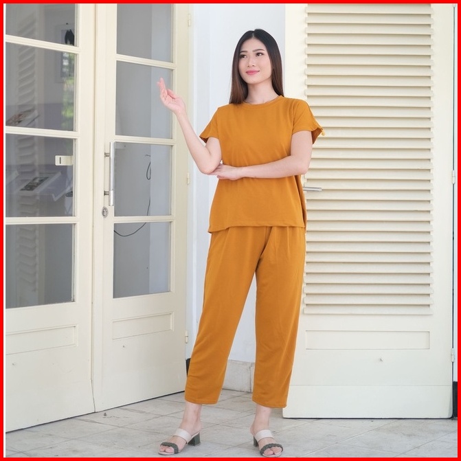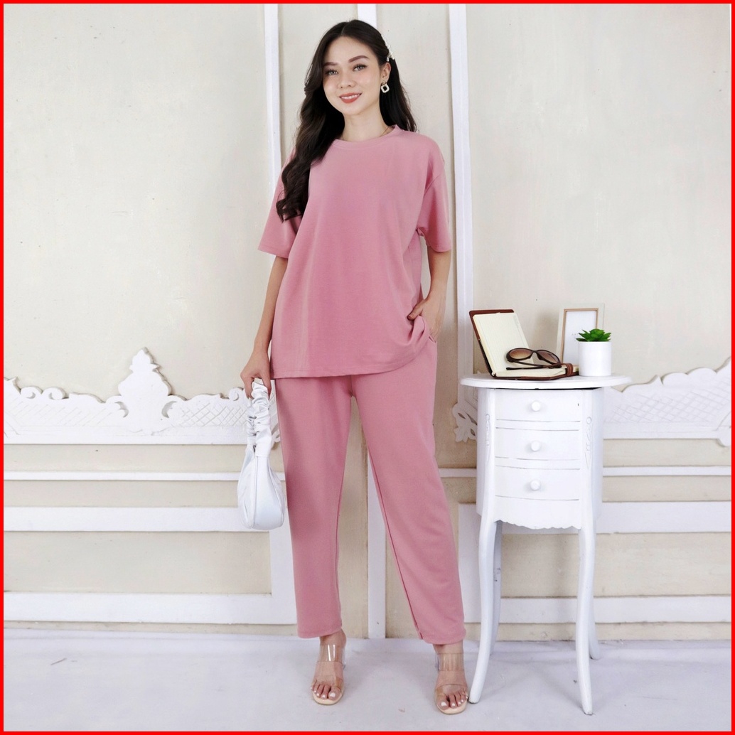 Setelan Celana Panjang One Set Kaos Polos Celana Panjang Homewear Daily Set Adem Halus Tebal