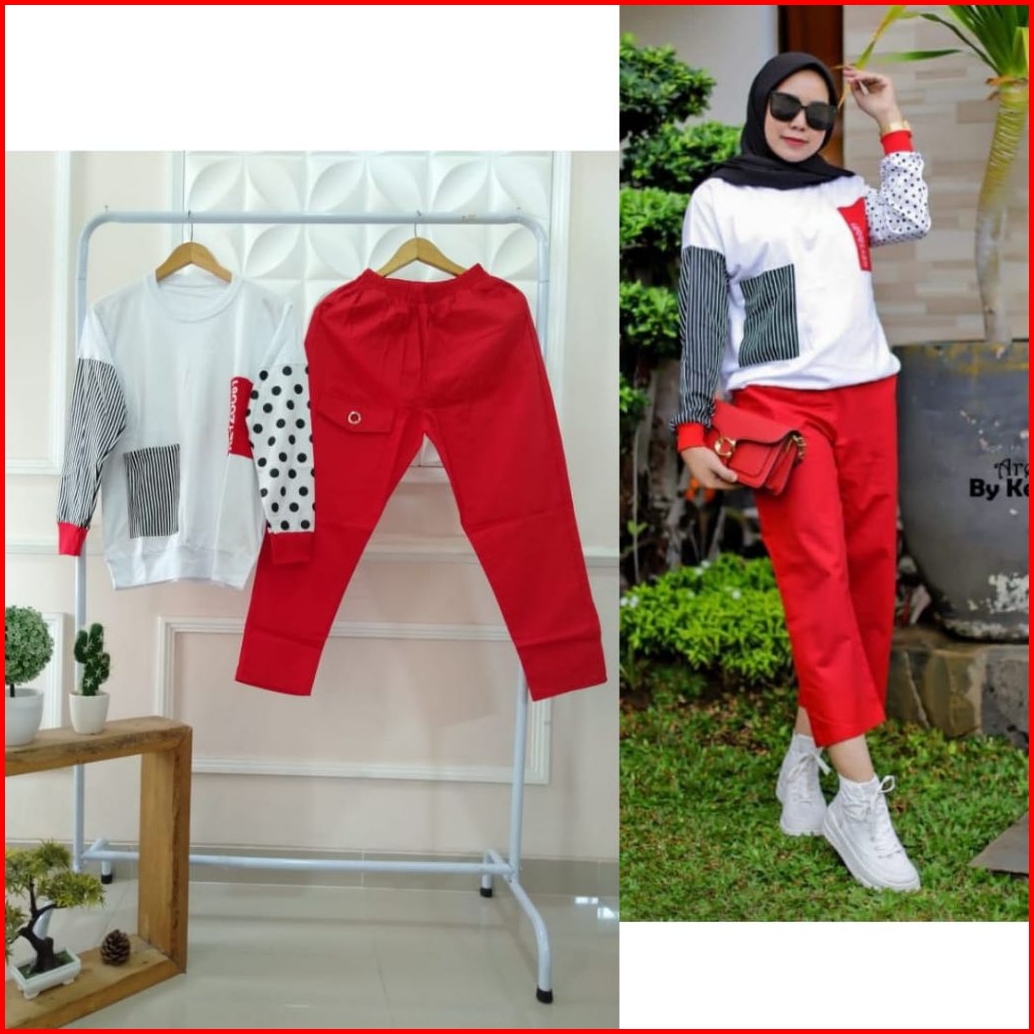 Yoshi Set Wanita Setelan Kaos Combed 20 S Dan Celana Panjang Cigaret By Jevanni Ori Atasan Kaos Combed 20 S Ld 108 Setel
