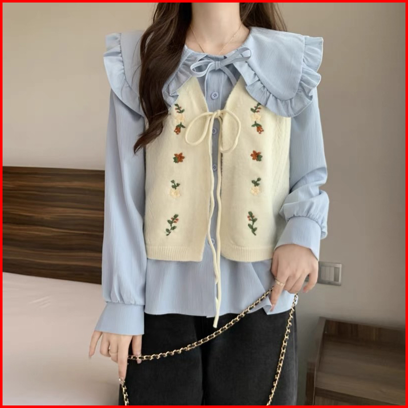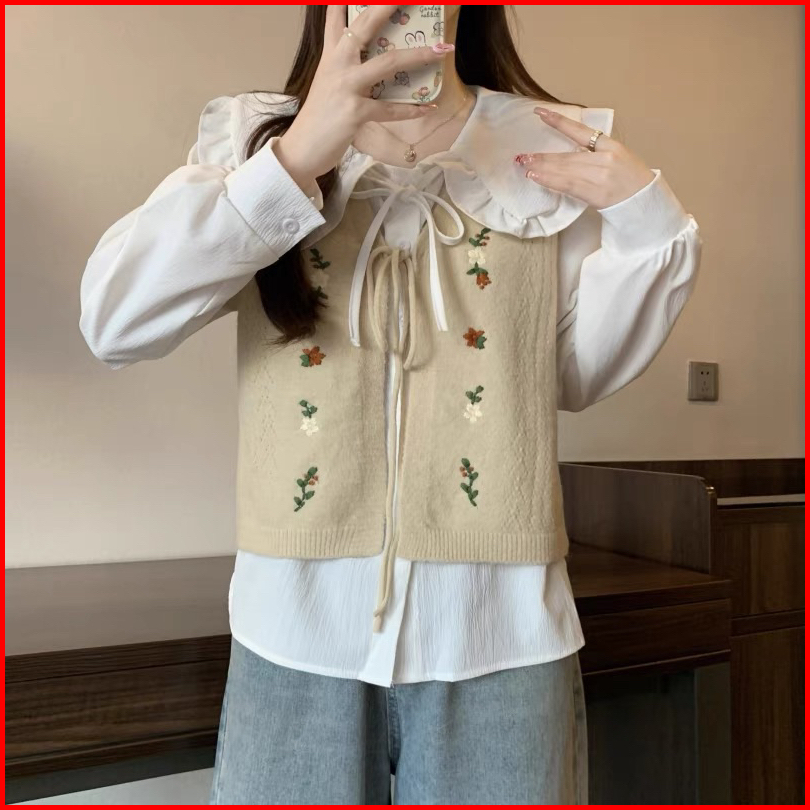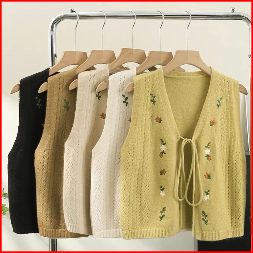 Vest Knit Bordir Wanita Rompi Embodiery Outer Women Atasan Luar Mx782