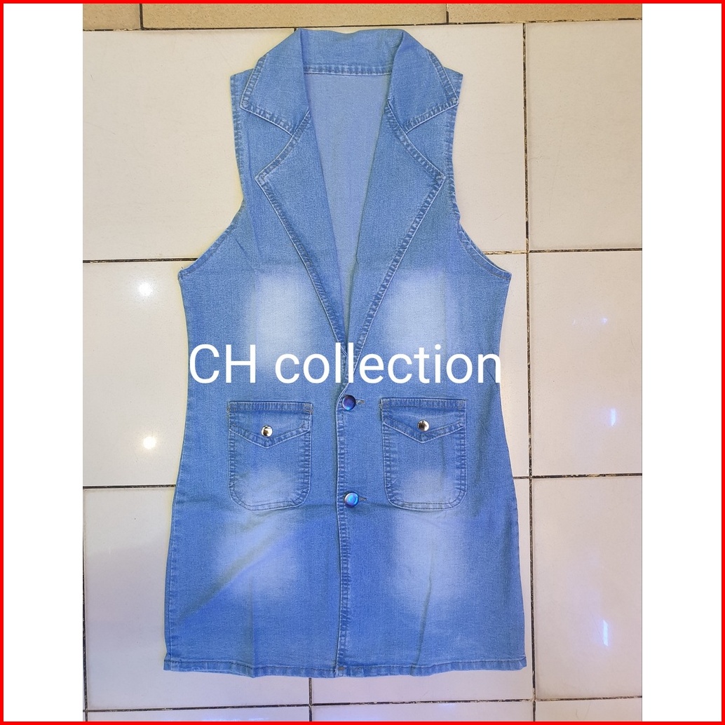 Rompi Jeans Body Panjang Rompi Panjang Outer Jeans Vest Denim Terbaru Cewek Rompi Wanita