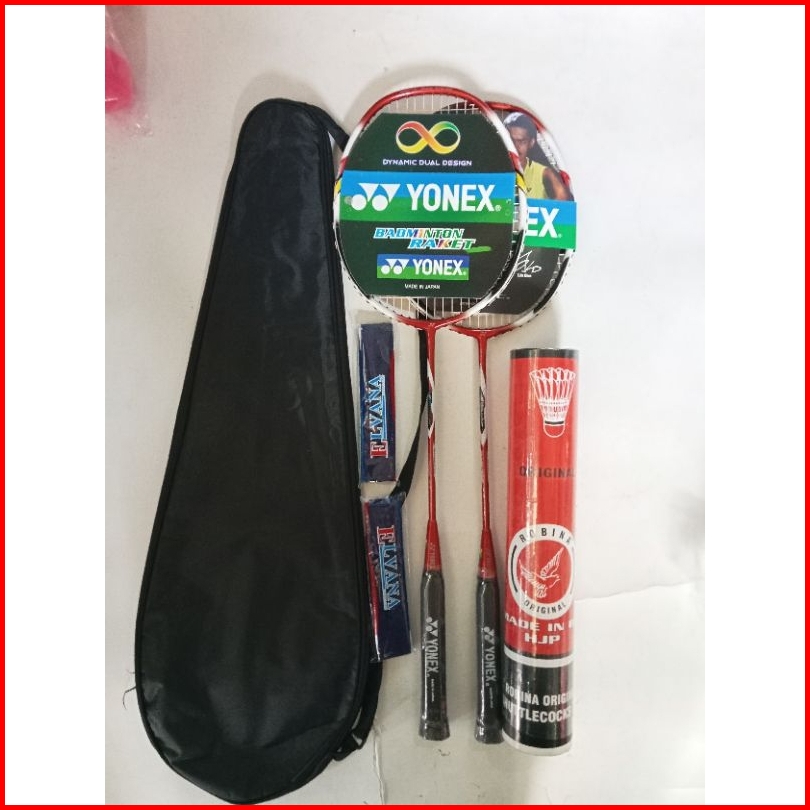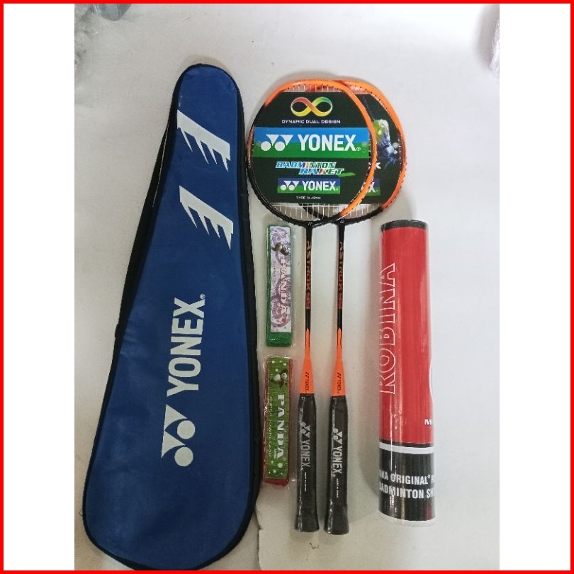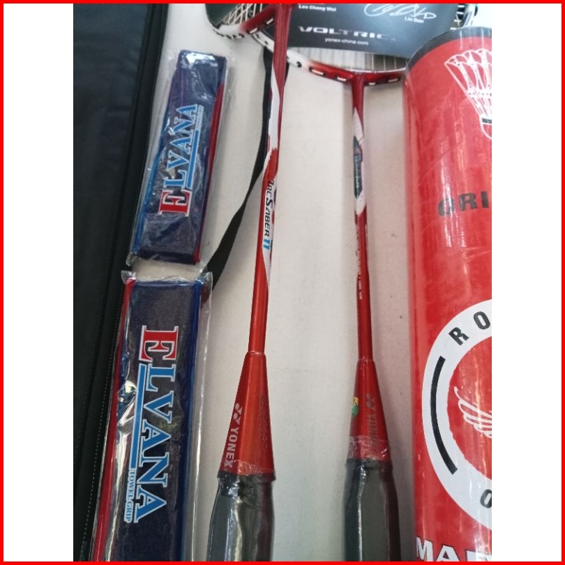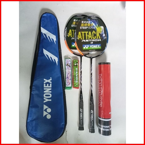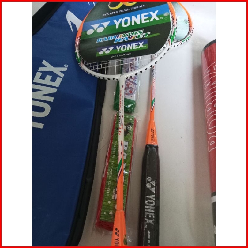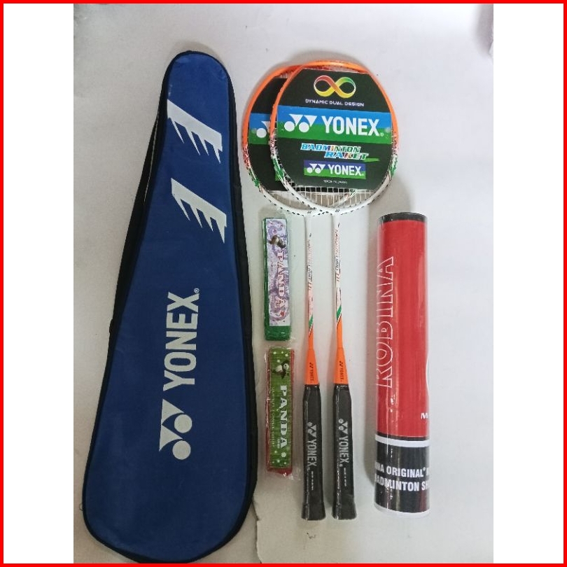 Raket Badminton Satu Set Komplit 2 Raket 2 Grip 1 Tas Kok Isi 12