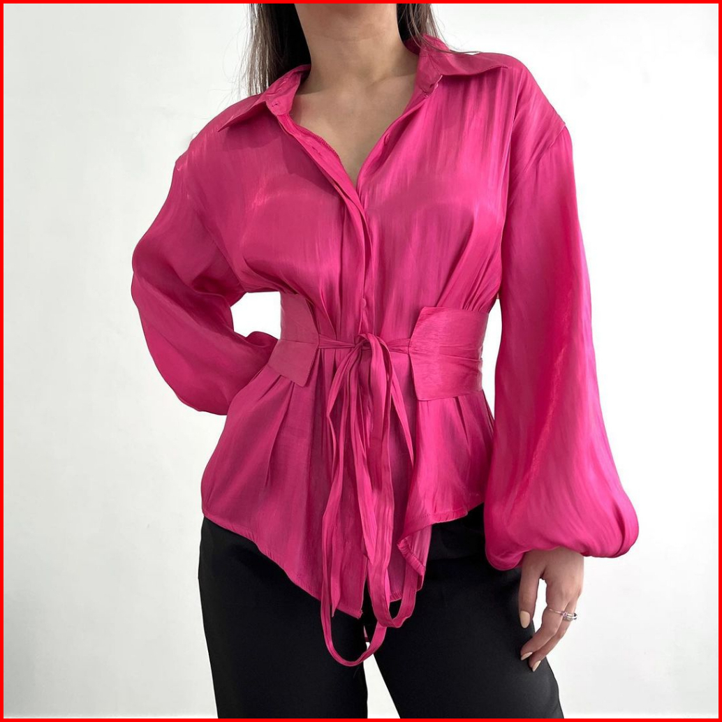 Blouse Shimmer Silk Aqilla Lengan Balon Belt