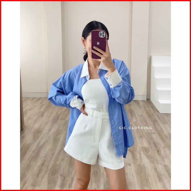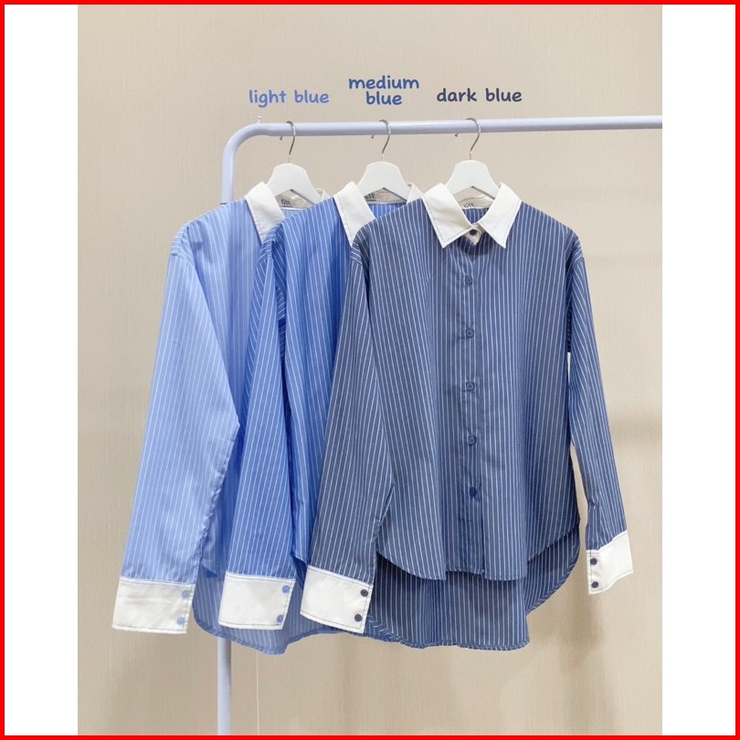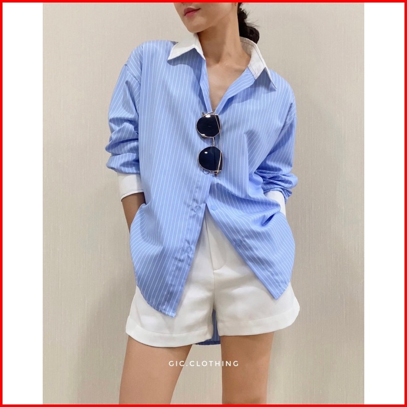 Gic Finley Stripes Shirt - Kemeja Kantor Wanita Motif Salur Lengan Panjang