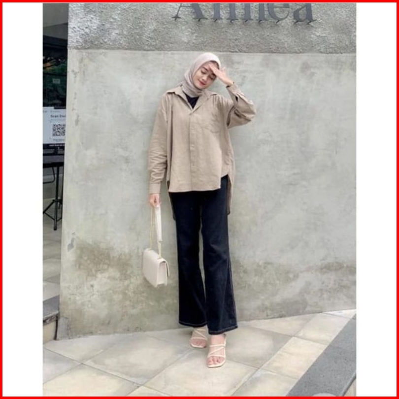 Atasan Linen Kemeja Wanita Linen Oversize Model Olivia Shirt Bahan Linen Premium