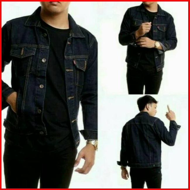 Jaket Jeans Denim Pria Cowok Hitam Black