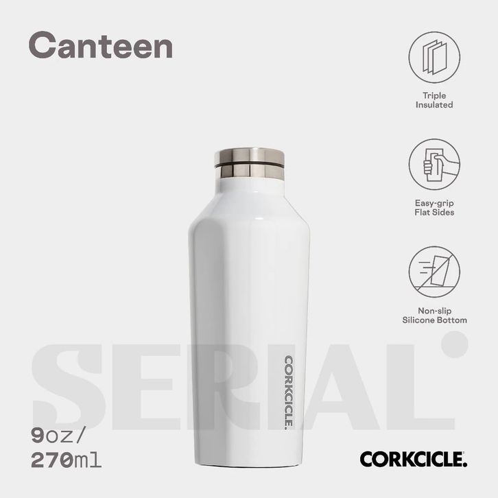 CORKCICLE CANTEEN 9OZ - CLASSIC WHITE