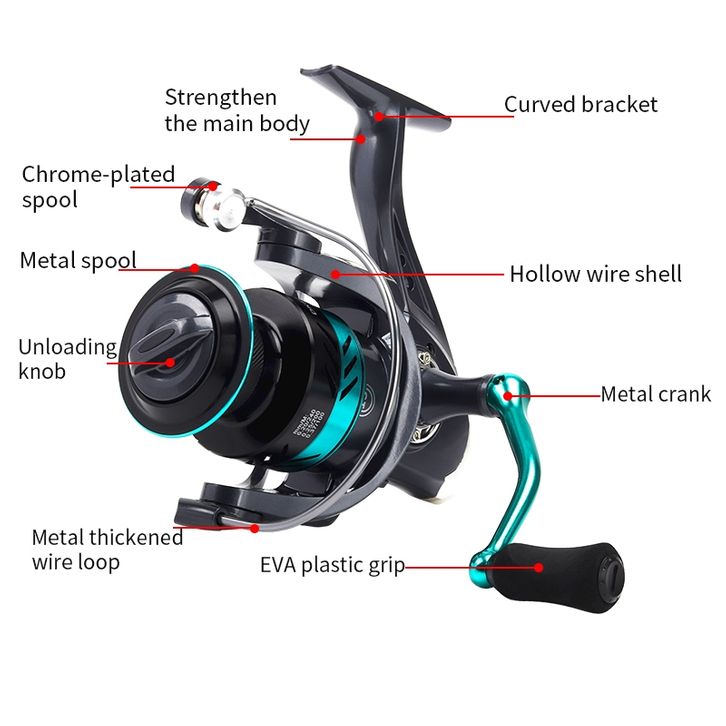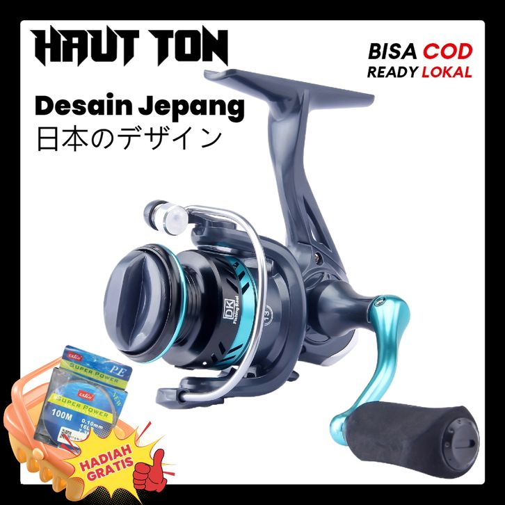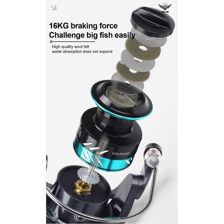 Reel Pancing HAUTTON DK Reel Pancing Gulungan Pancing Putar Reels, EVA Handle, Rasio Gigi 5.2:1, Tarikan Maks 16KG, Ban
