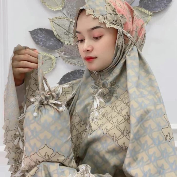 Alfarizi Mukena Traveling Dewasa Mini pouch 2in1 Resleting Dagu Motif Terbaru Katun Premium