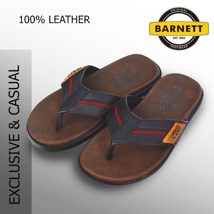 BARNETT OBRAL SANDAL JEPIT PRIA CASUAL GENUINE LEATHER SOL TPR SIZE 39-43 SANDAL HANGOUT PRIA
