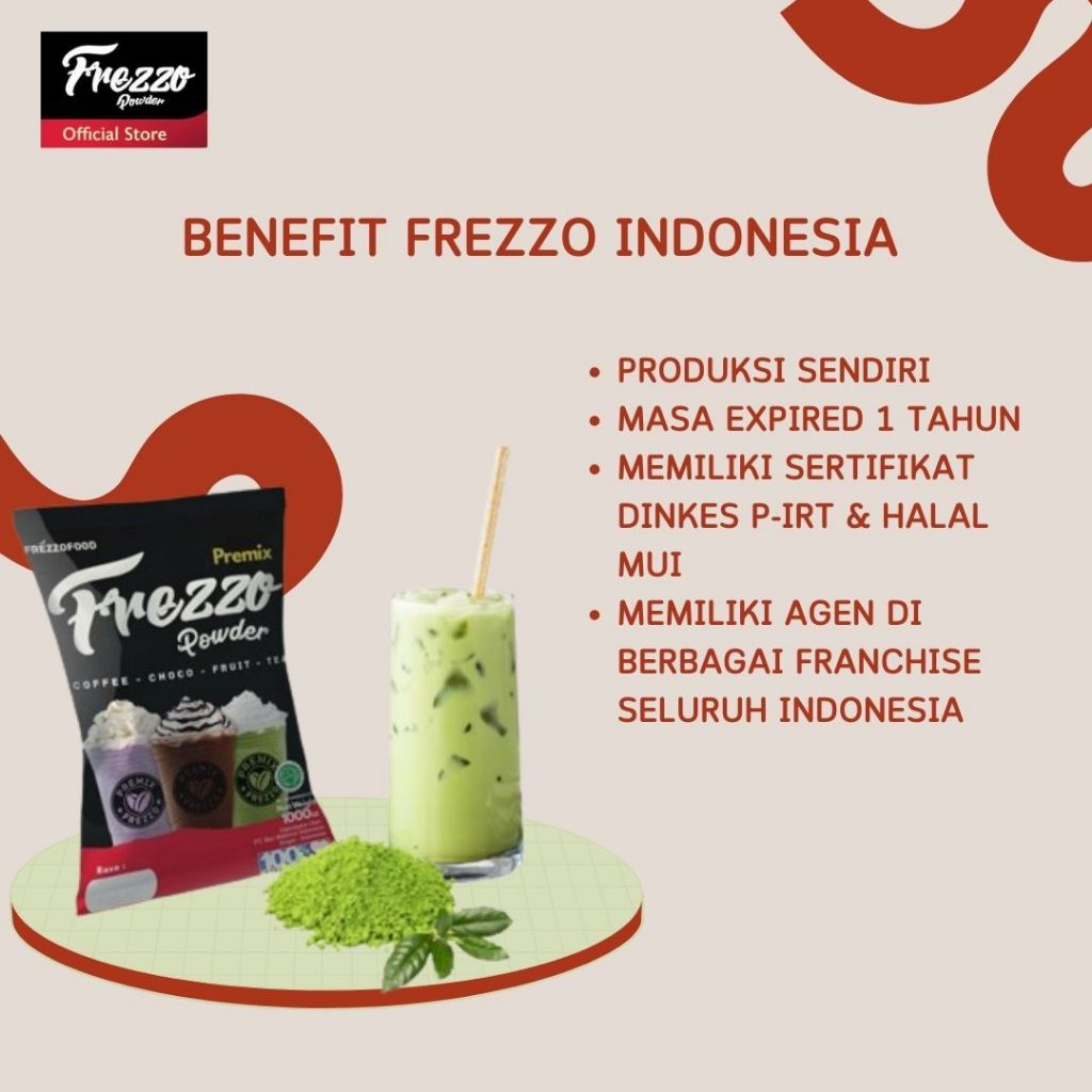 BUBUK MINUMAN FREZZO POWDER PREMIX GREEN TEA 1KG / MINUMAN DENGAN GULA ALAMI DAN TERENAK/ FREZZO INDONESIA