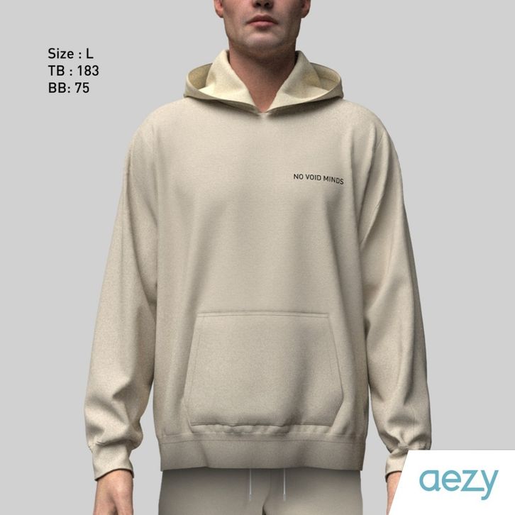 Hoodie Pria AEZY Signature Warna Sand Cream Oversize