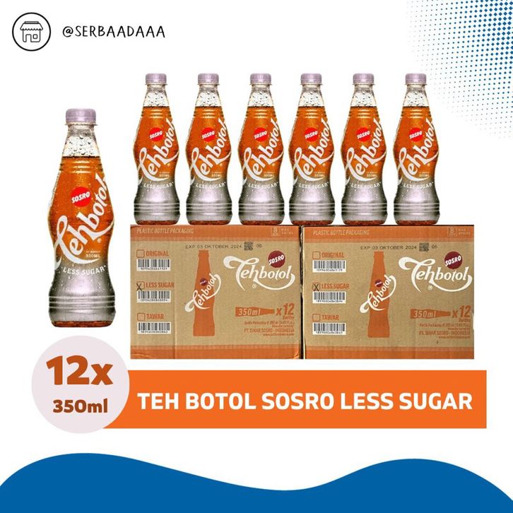 TEH BOTOL SOSRO LESS SUGAR 350ml isi 12 botol