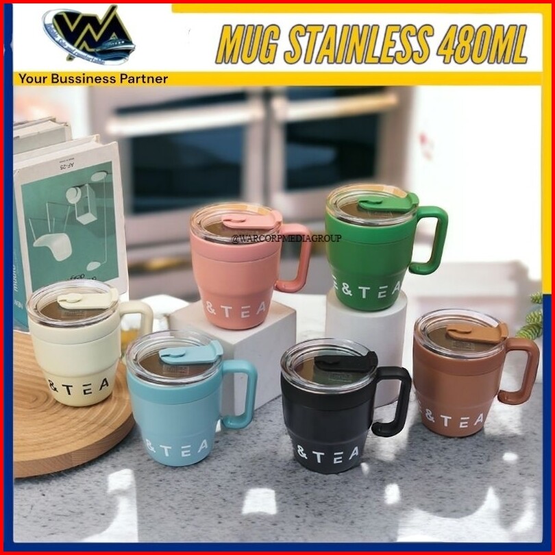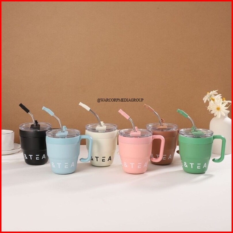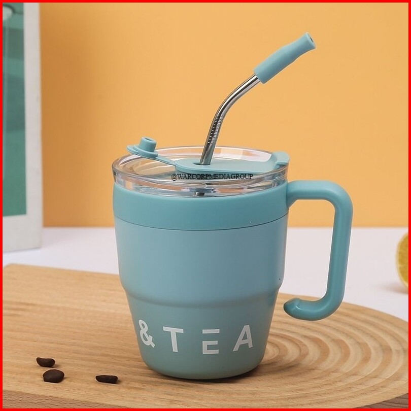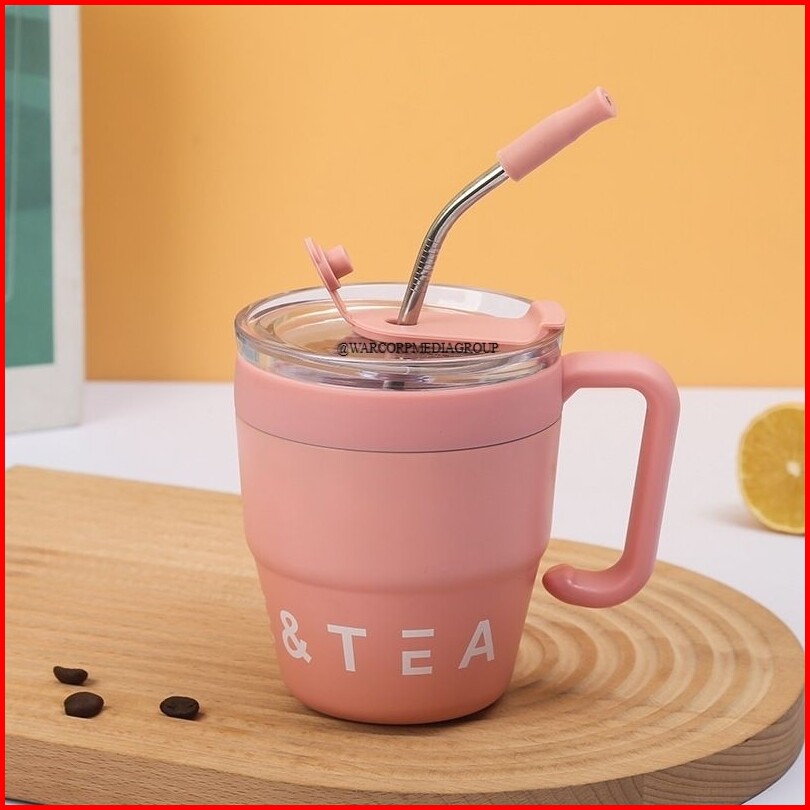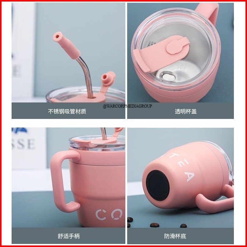 Wmedia Mug Stainless 480ml Free Sedotan Mug Coffee Tea Cangkir Stainless 304