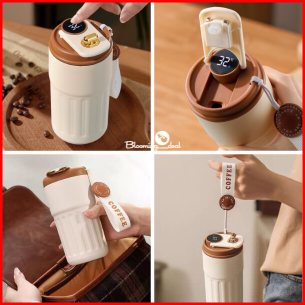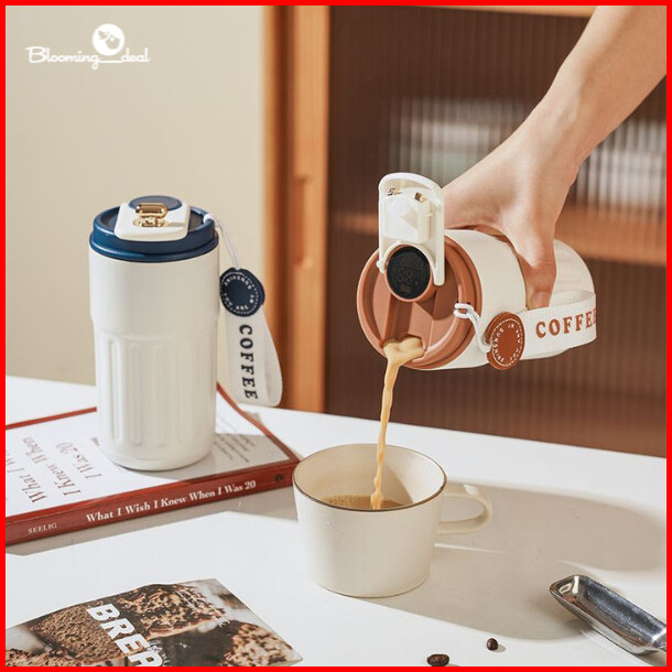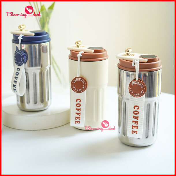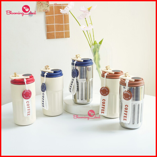 Coffee Mug Aesthetic Stainless Steel Led Dengan Tali 410ml Hn136