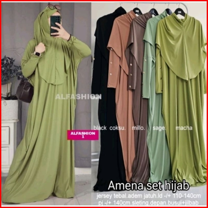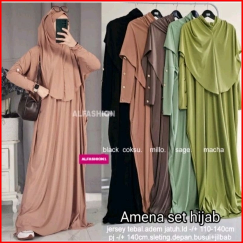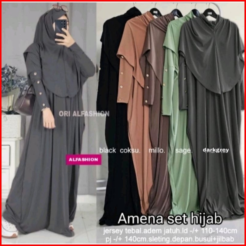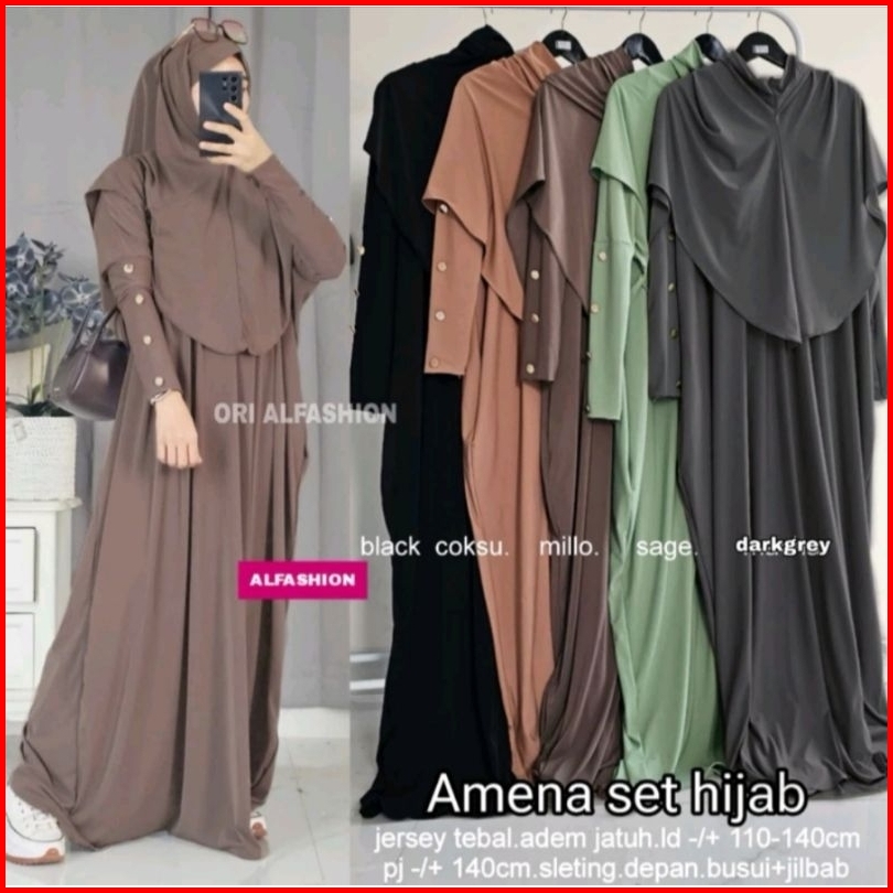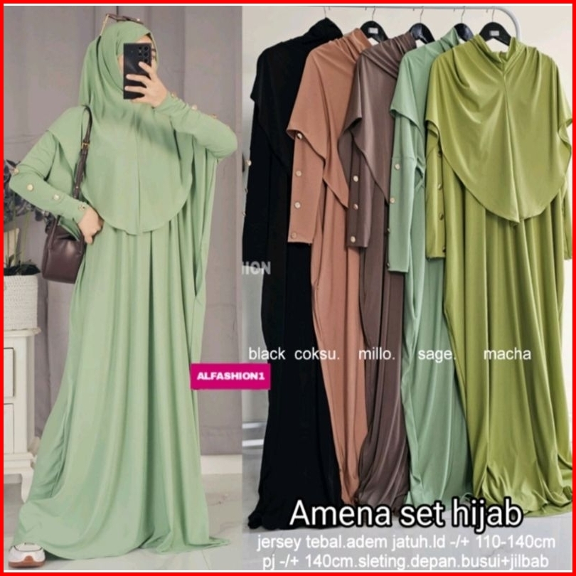 Promo 12.12 Ready Siap Kirim Gamis Kaftan Set Hijab Best Seller Bahan Jersey Tebal Premium Amena Set Hijab Ori By Alfash