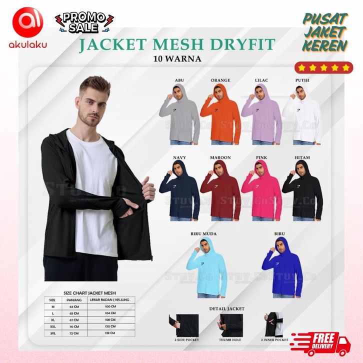 [Mall]Jaket UV Protection Dry Fit Mesh – Jaket Sport Olahraga Pria Wanita Lari, Yoga, Fitness | Bahan Adem & Stretch
