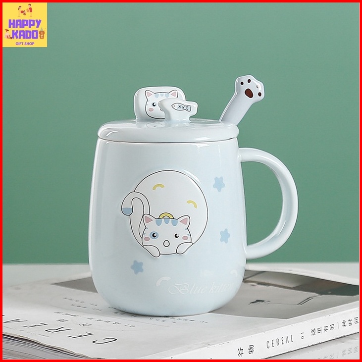 Gelas Mug Kucing Aesthetic Lucu Mungil Keramik Kado Ulang Tahun Hadiah Natal Valentine