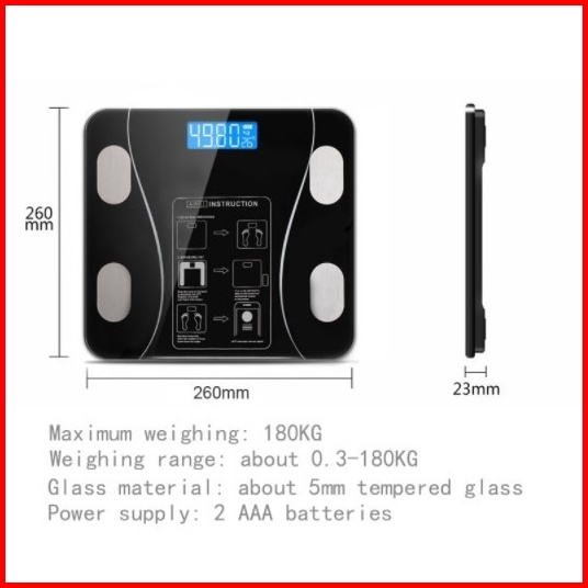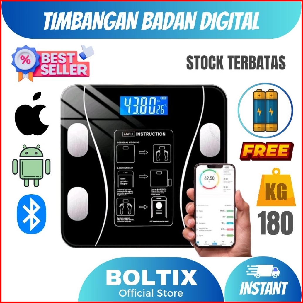 Timbangan Badan Multifungsi Bluetooth Digital 180kg Body Fat Scale With Monitor App Analysis Smart Tempered Glass
