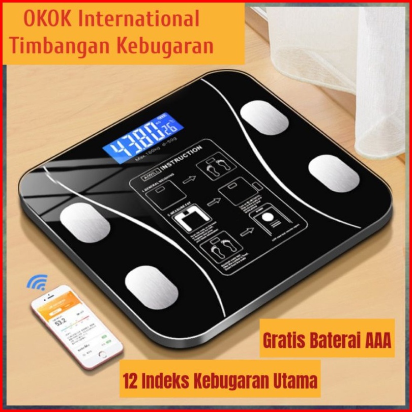 Timbangan Badan Kebugaran Smart Scale Okok International Mengukur 12 Indeks Kebugaran Essensial