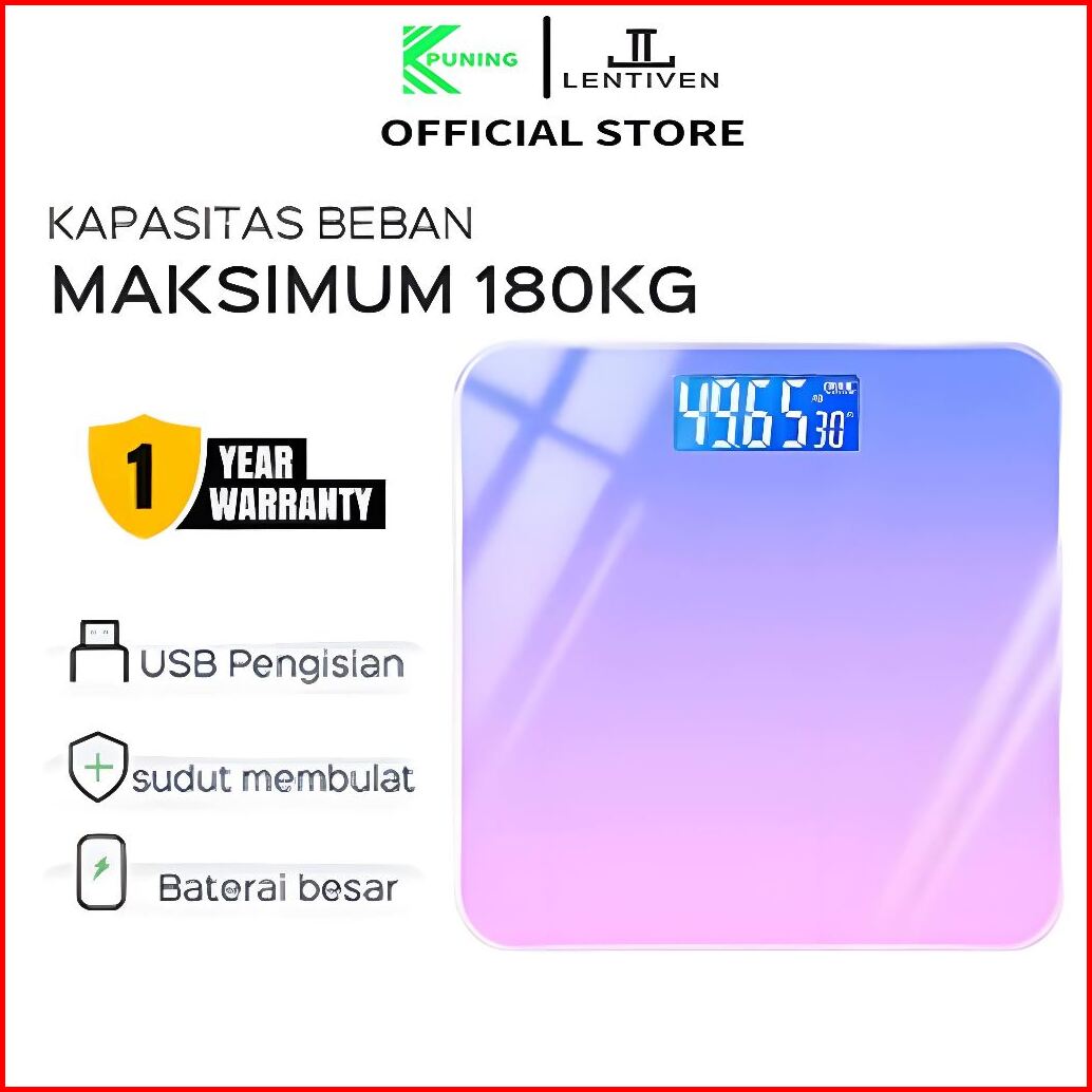 Puning Lentiven Timbangan Badan Kaca Digital Body Elektronik Kartun 180kg Usb Charging Anti Pecah Layar Lcd