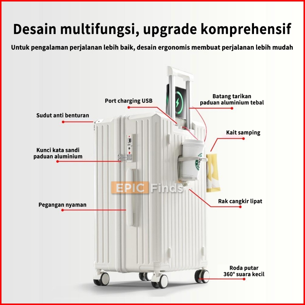 Epic Finds Koper Bagasi Dan Kabin Bahan Polikarbonat 20-28 Inci Koper Tersedia Port Pengisian Daya Usb Tahan Gores Dan T