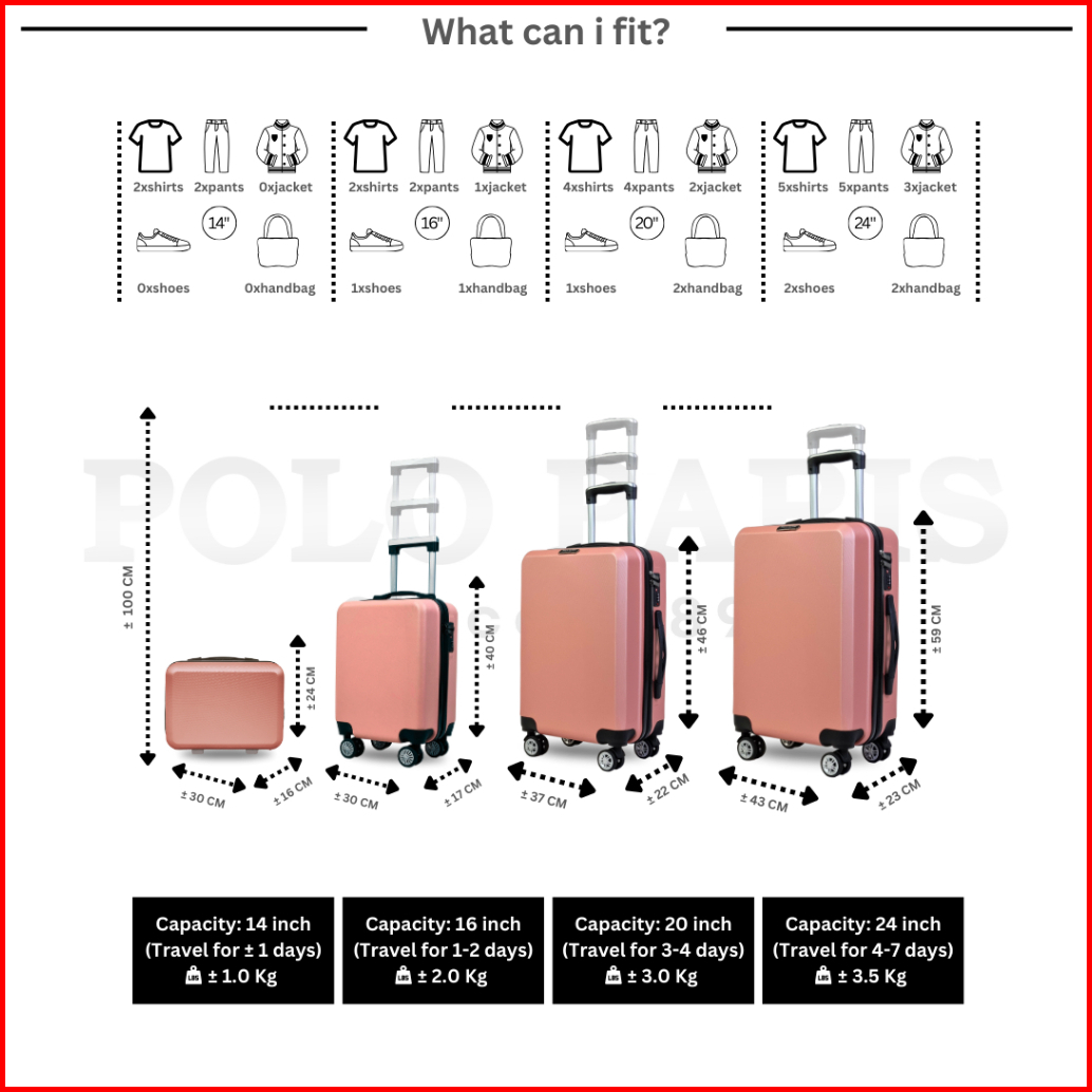 Poloparis - Koper Polos 001 20 24 Inch Fiber Abs Kunci Tanam Kombinasi 3 Angka Roda 360