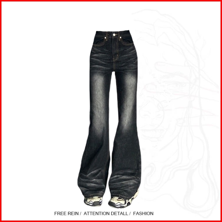 Forteid Jeans Hitam Retro Korean Stylecelana Model Lonceng Wanita Kekinian Celana Lurus Pinggang Tinggi Celana Lebar Kak