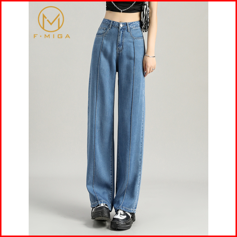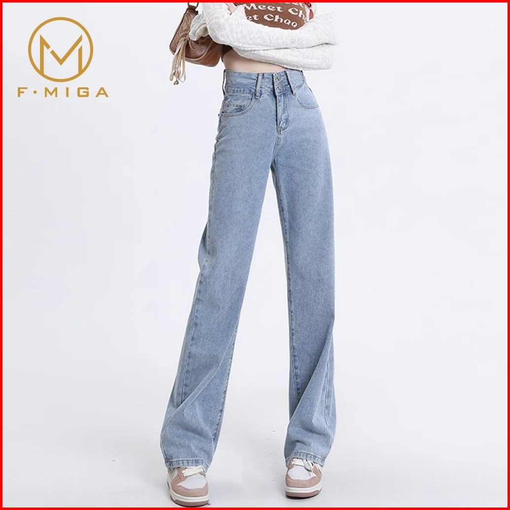 F Miga C15 Highwaist Korean Straight Bagy Jeans Celana Panjang Denim Wanita - Biru