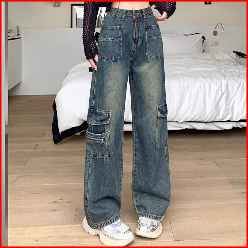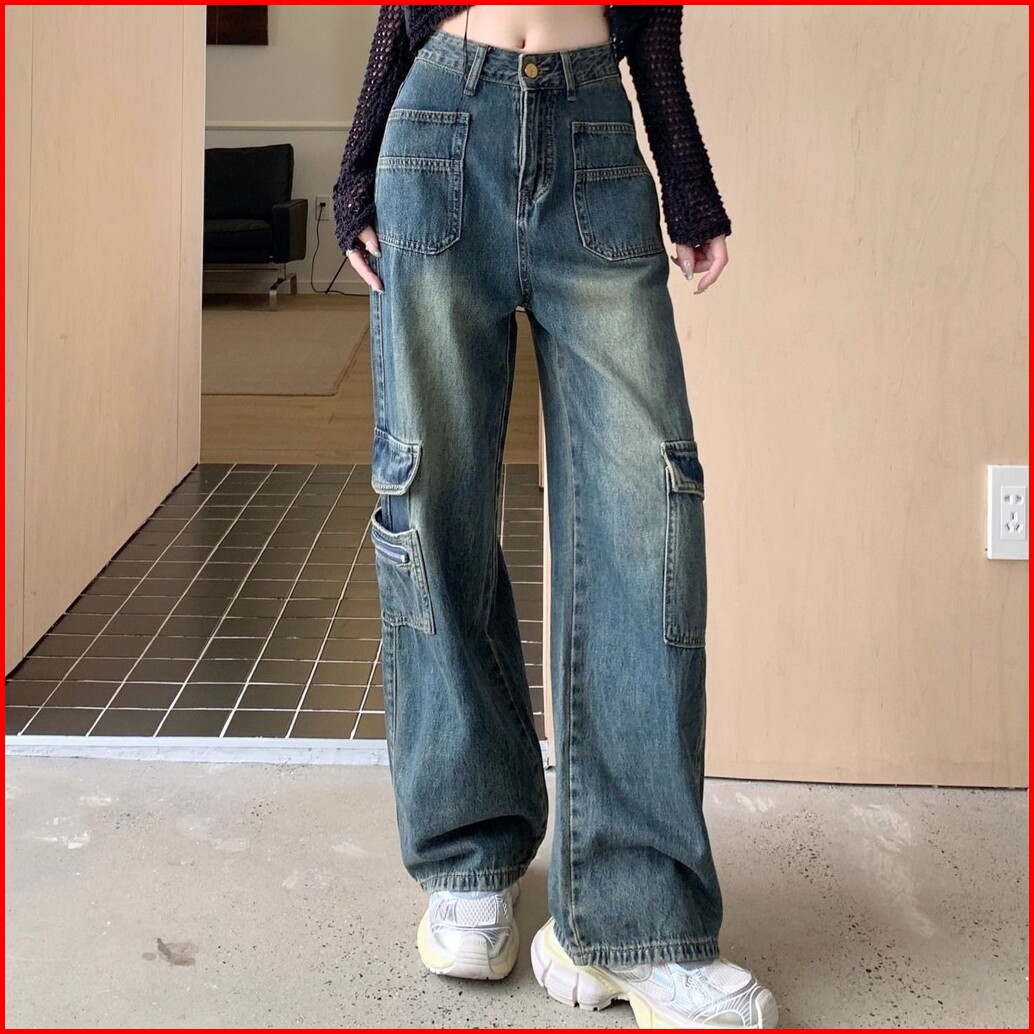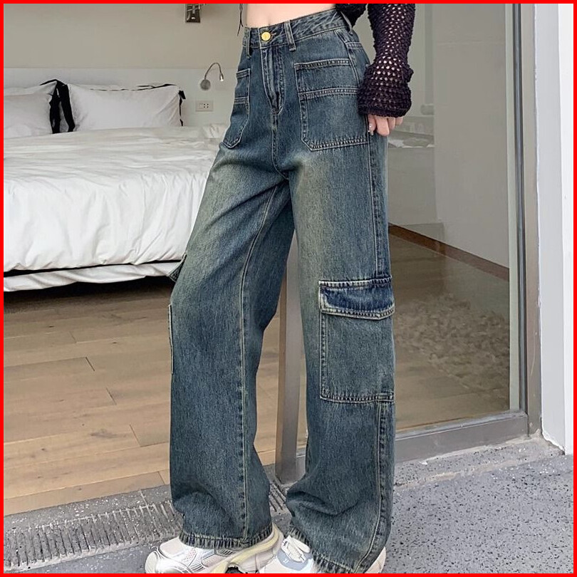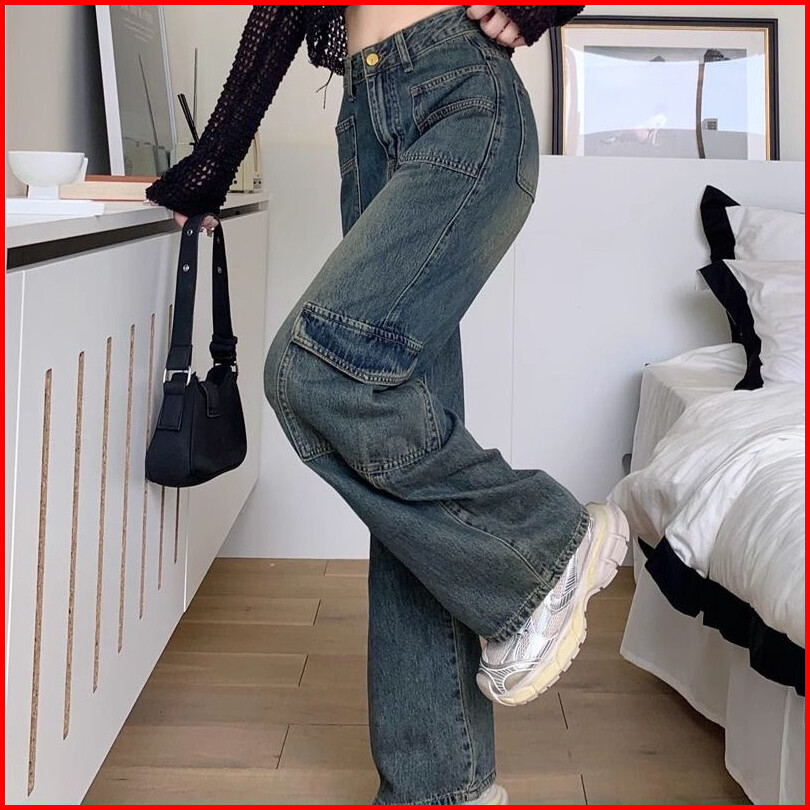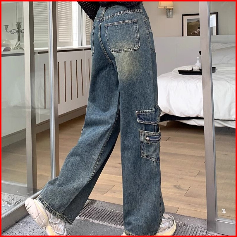 Celana Lebar Denim Biru Wanita Korean Minimalis
