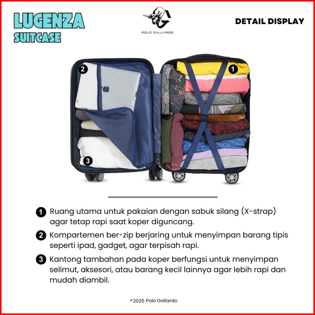 Polo Gallardo Lugenza Koper 20 Inch 24 Inch Size Cabin Dan Bagasi Hardcase Fiber Abs
