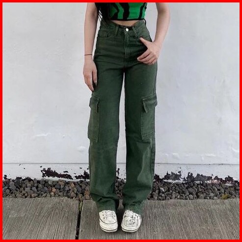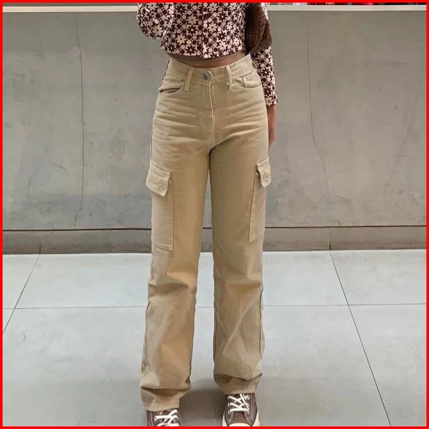 Celana Cargo Highwaist Jeans Loose Hangover - Celana Cargo Wanita Terbaru - Celana Cargo Jeans Wanita
