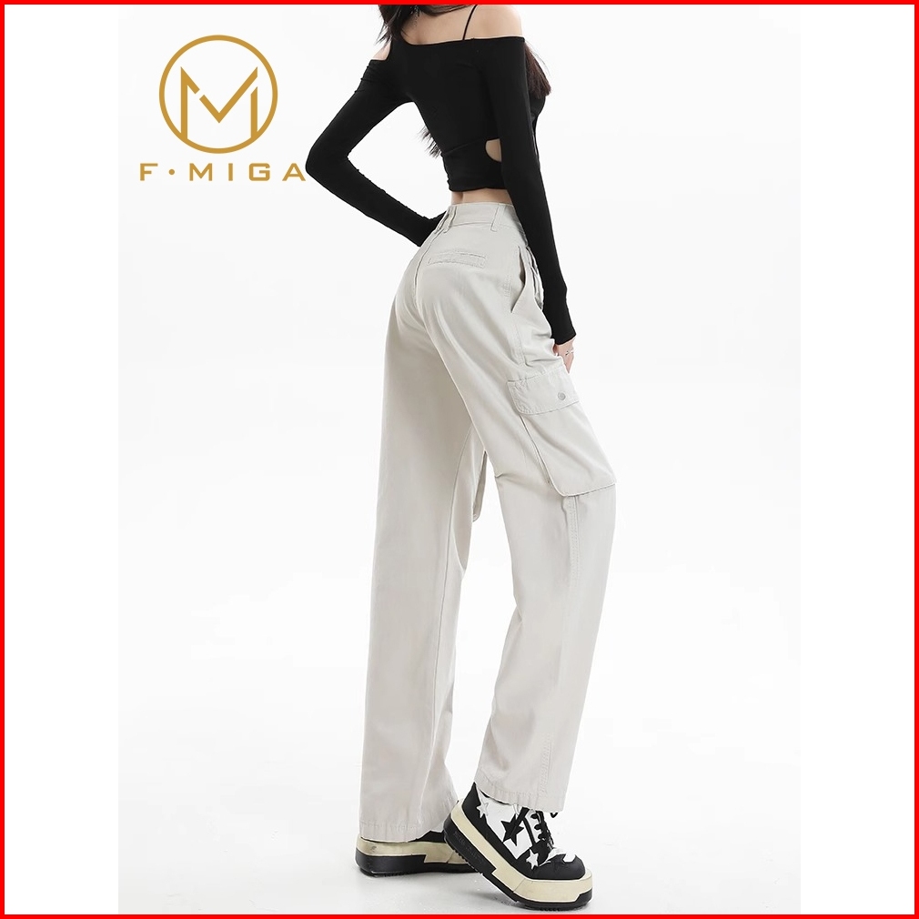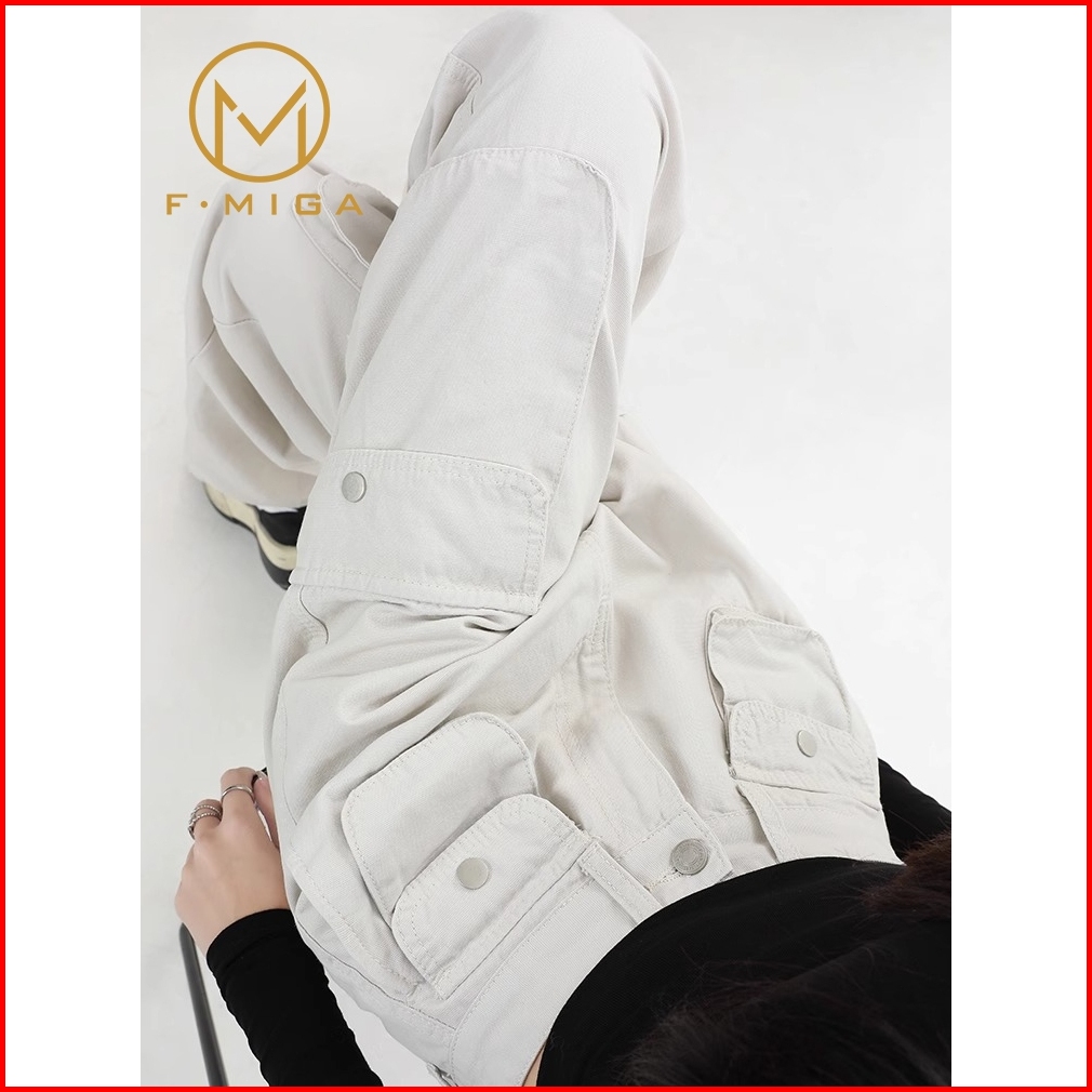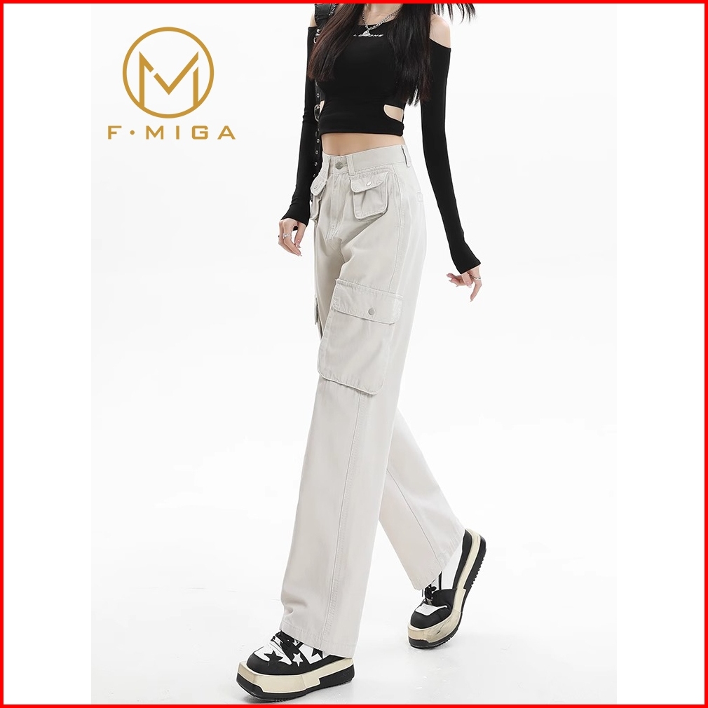 F Miga C113 Highwaist Cargo Celana Jeans Panjang Wanita Putih