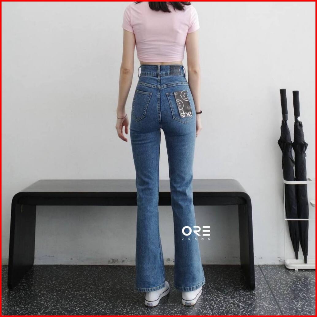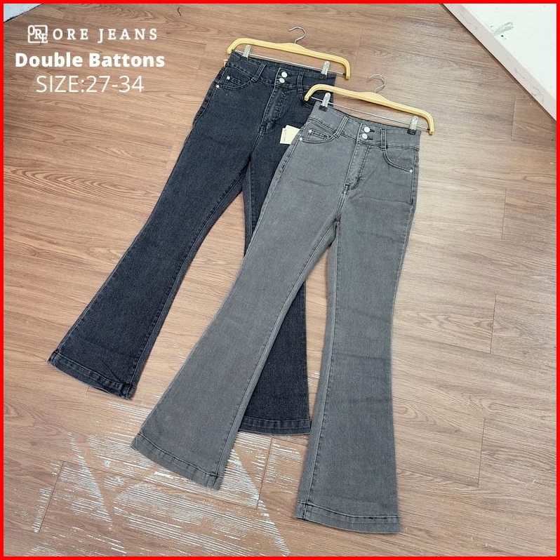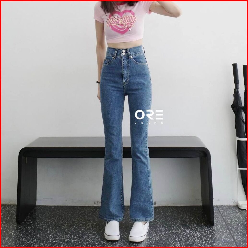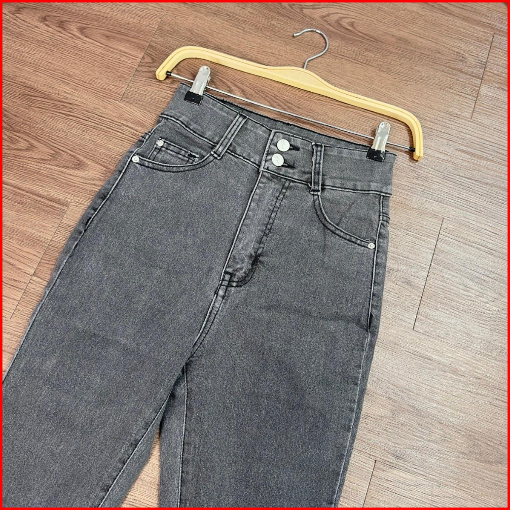 Ore - Cp930 Highwaist Cutbray Jeans Strech Vintage Retro Slim-fitting Double Buttons