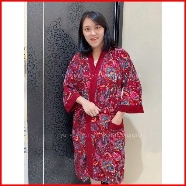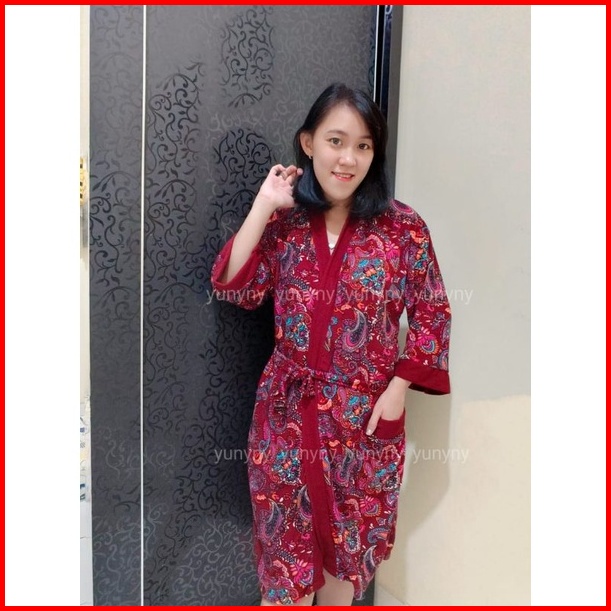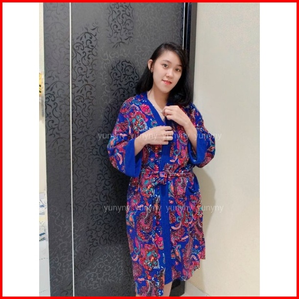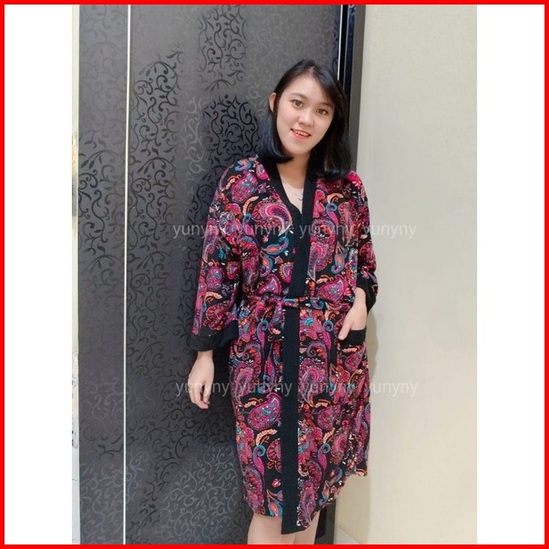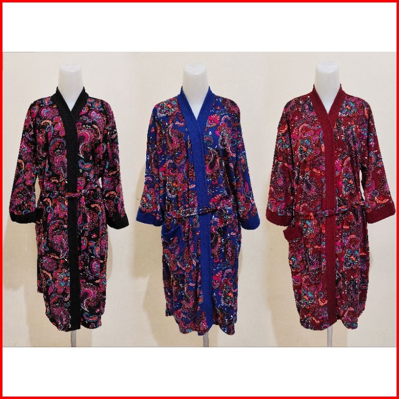 Kimono Handuk Full Motif Batik Hitam Poliester