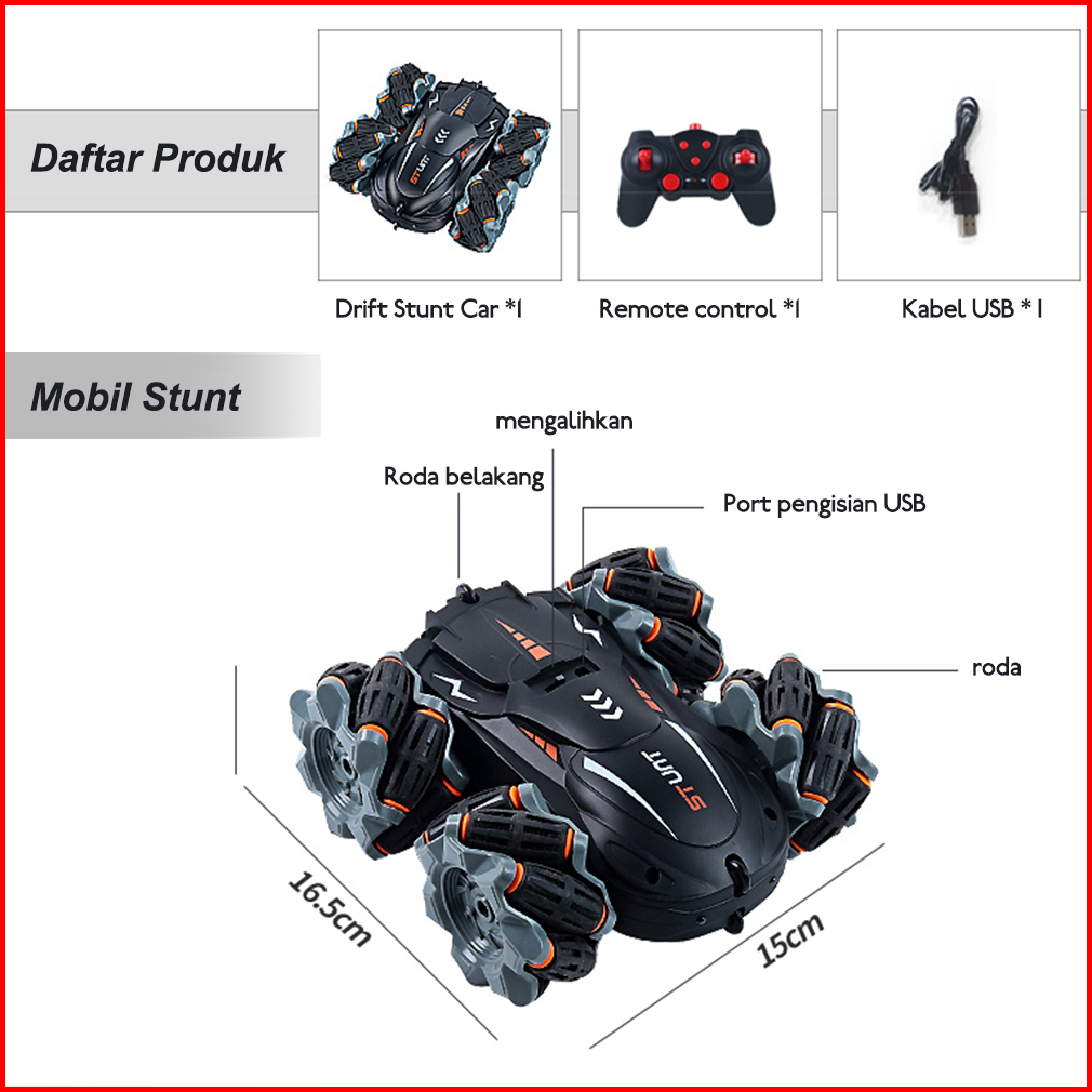 Wetech Mobil Remote Control 4wd Rc Stunt Drift Car 2.4ghz With Light Mainan Anak Mobil Stunt Car Rc