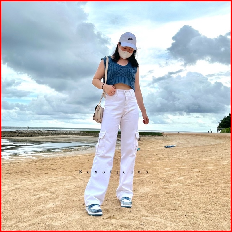 Boxofjeans - Cargo Hw Loose Jeans Putih Super High Waist