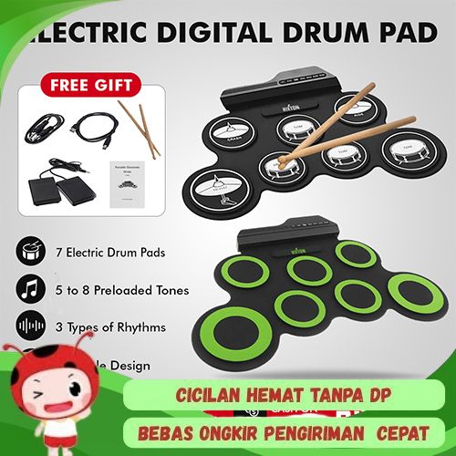 [Mall] Rixton Drum Elektronik Portabel Digital USB 7 Bantalan Roll up Drum Set Silicone Electric Drum Pad Kit