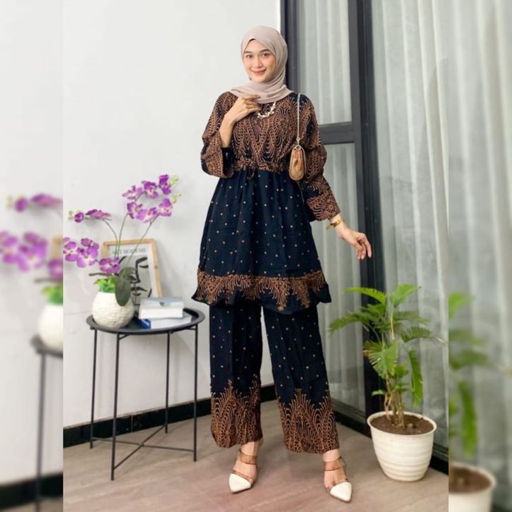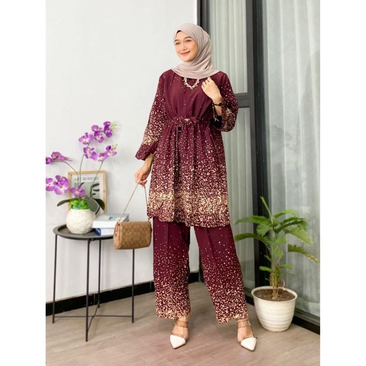Baju Setelan Wanita Murah Tiedye Tunik Tali Serut Motif Batik Semprot Blirik