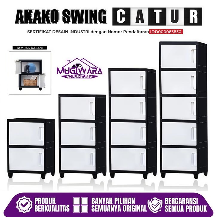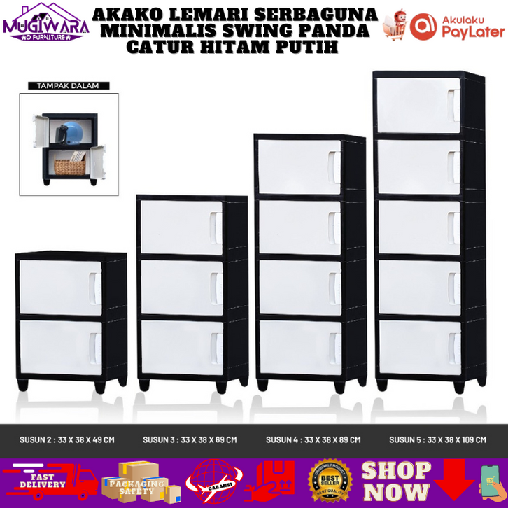 LEMARI AKAKO LEMARI PAKAIAN BAJU PLASTIK SERBAGUNA MINIMALIS SWING PANDA CATUR HITAM PUTIH LACI 2 3 4 5 TERLARIS MURAH
