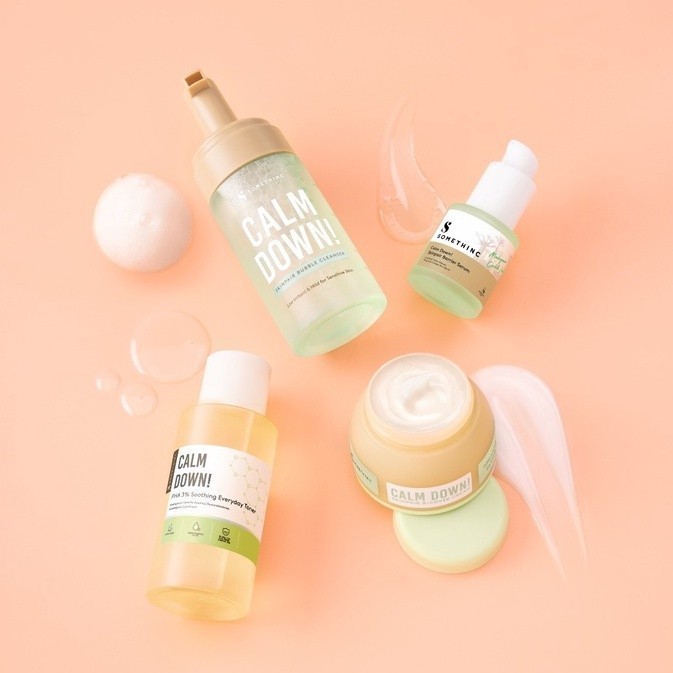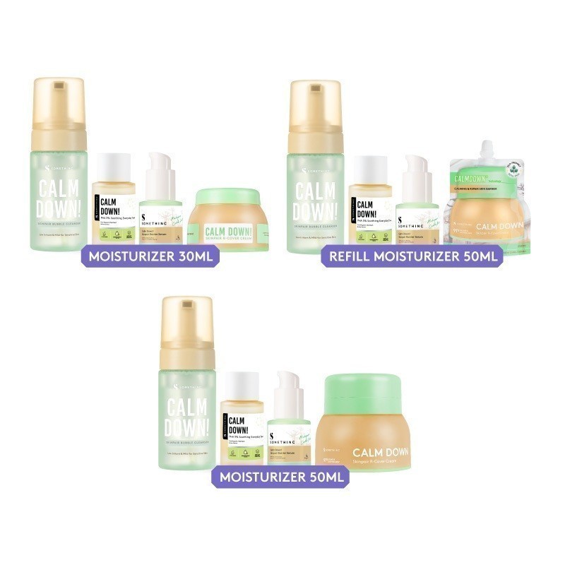 SOMETHINC [4 PCS] PAKET LENGKAP CALM DOWN SERIES (BUBBLE CLEANSER TONER SERUM MOISTURIZER) - FREE BOX
