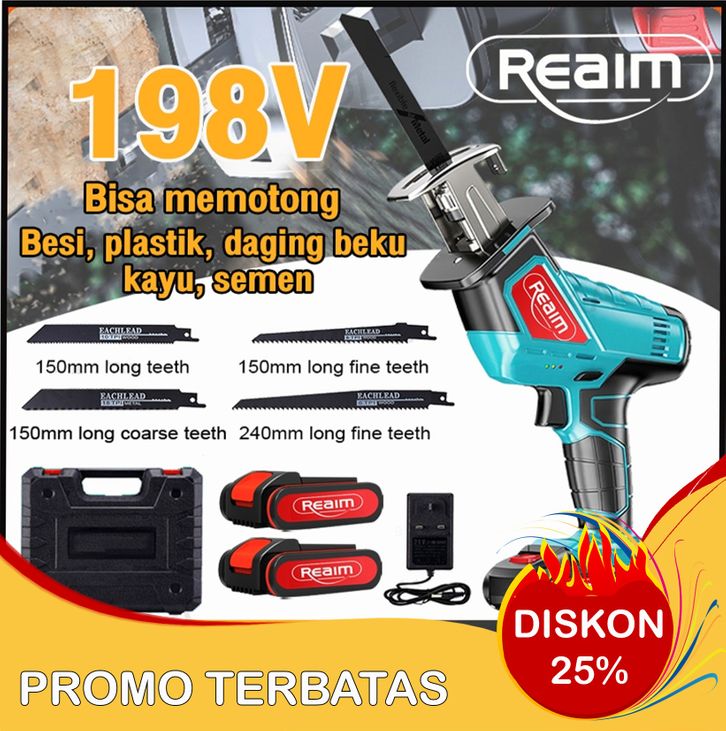 Reaim Chainsaw Gergaji Rantai Gergaji Elektrik Mini Portable Genggam Lithium Charger gergaji mesin