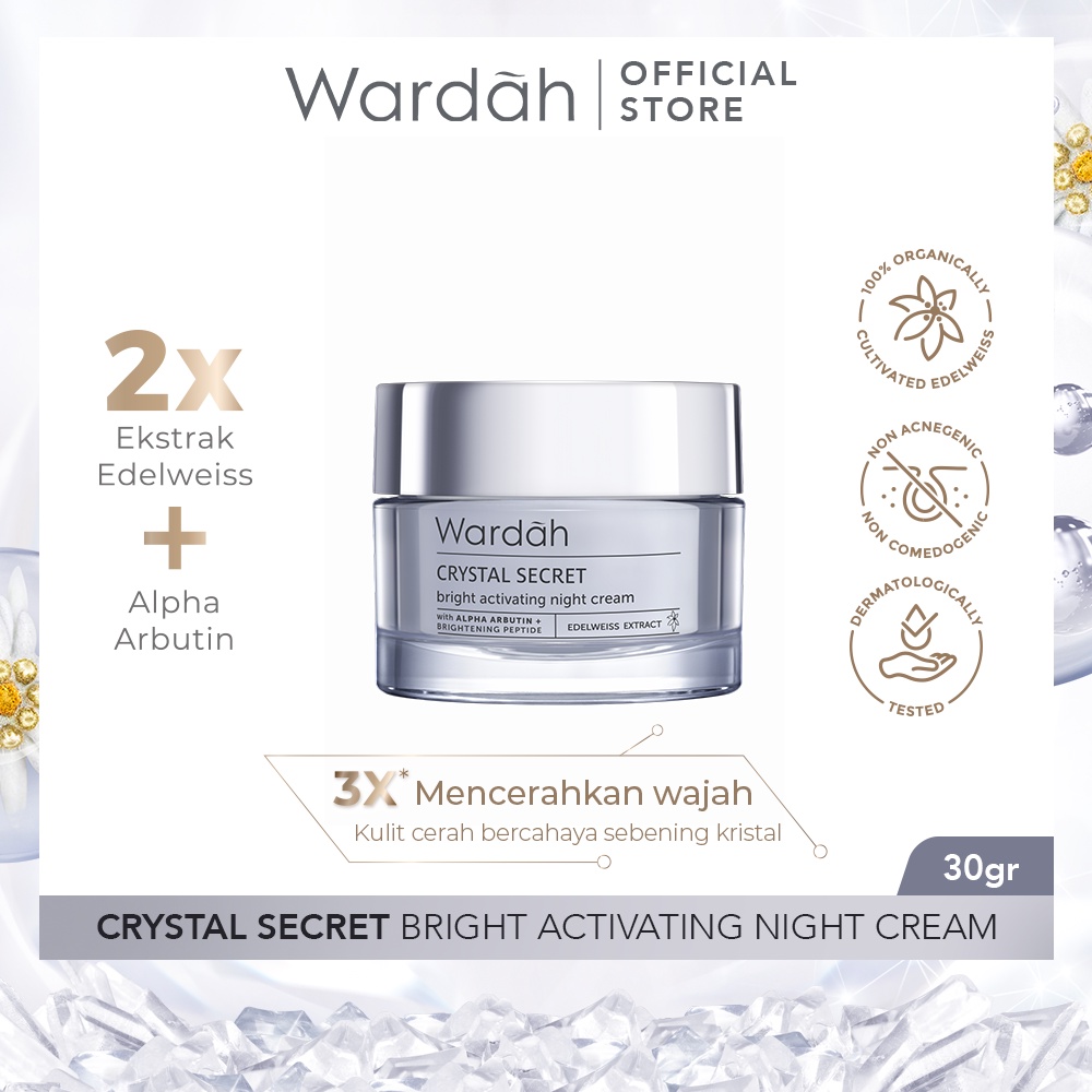 WARDAH ALPHA ARBUTIN + 5 PERSEN NIACINAMIDE CRYSTAL SECRET BRIGHT ACTIVATING NIGHT CREAM LEBIH CERAH SEBENING KRISTAL