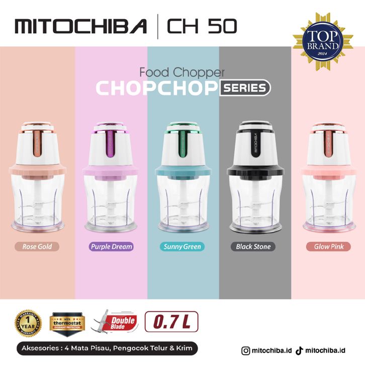 Chopper Mitochiba Choper CH 50 Bumbu & Daging Copper Kaca Coper 0.7 Liter Serbaguna Penggiling Daging Pencacah Daging