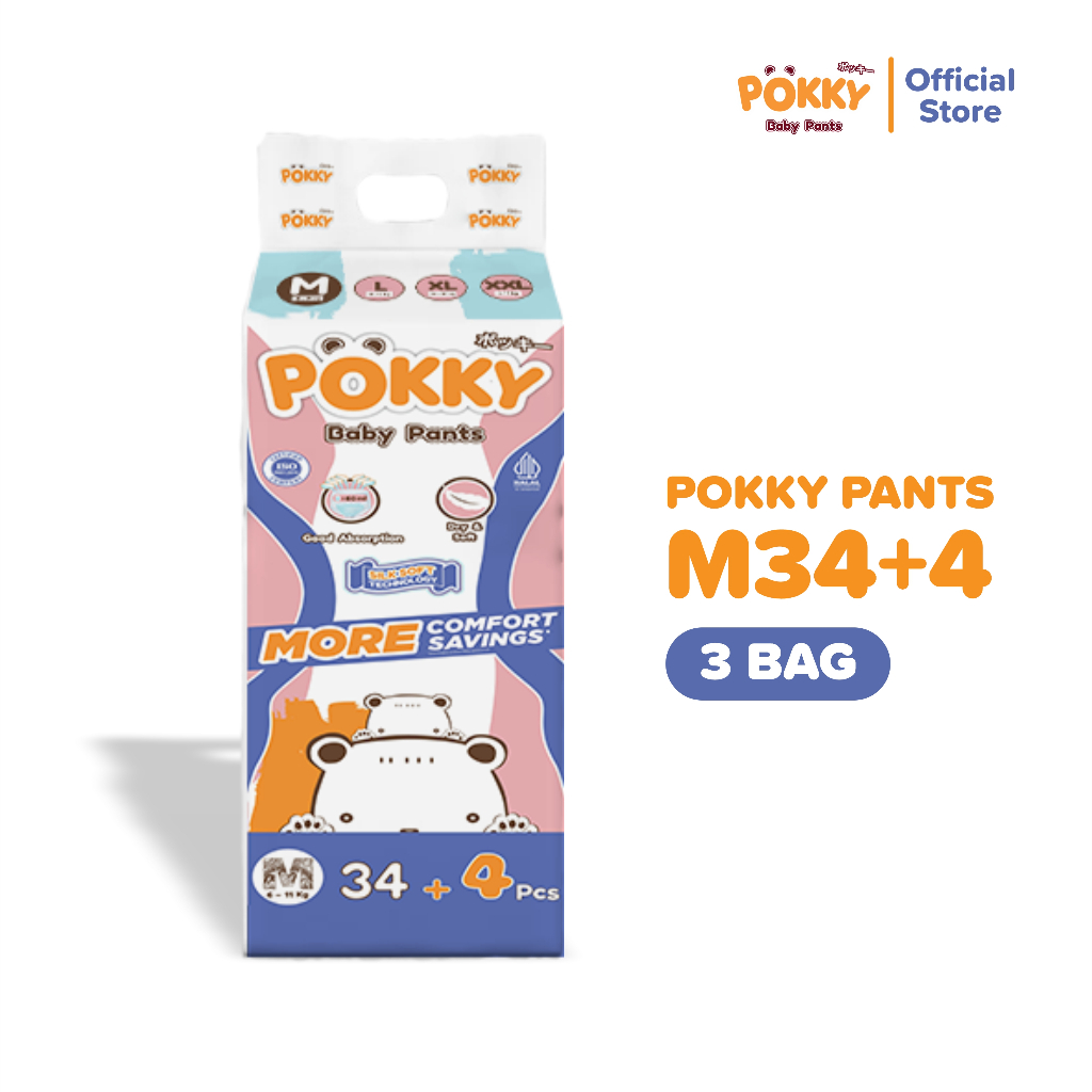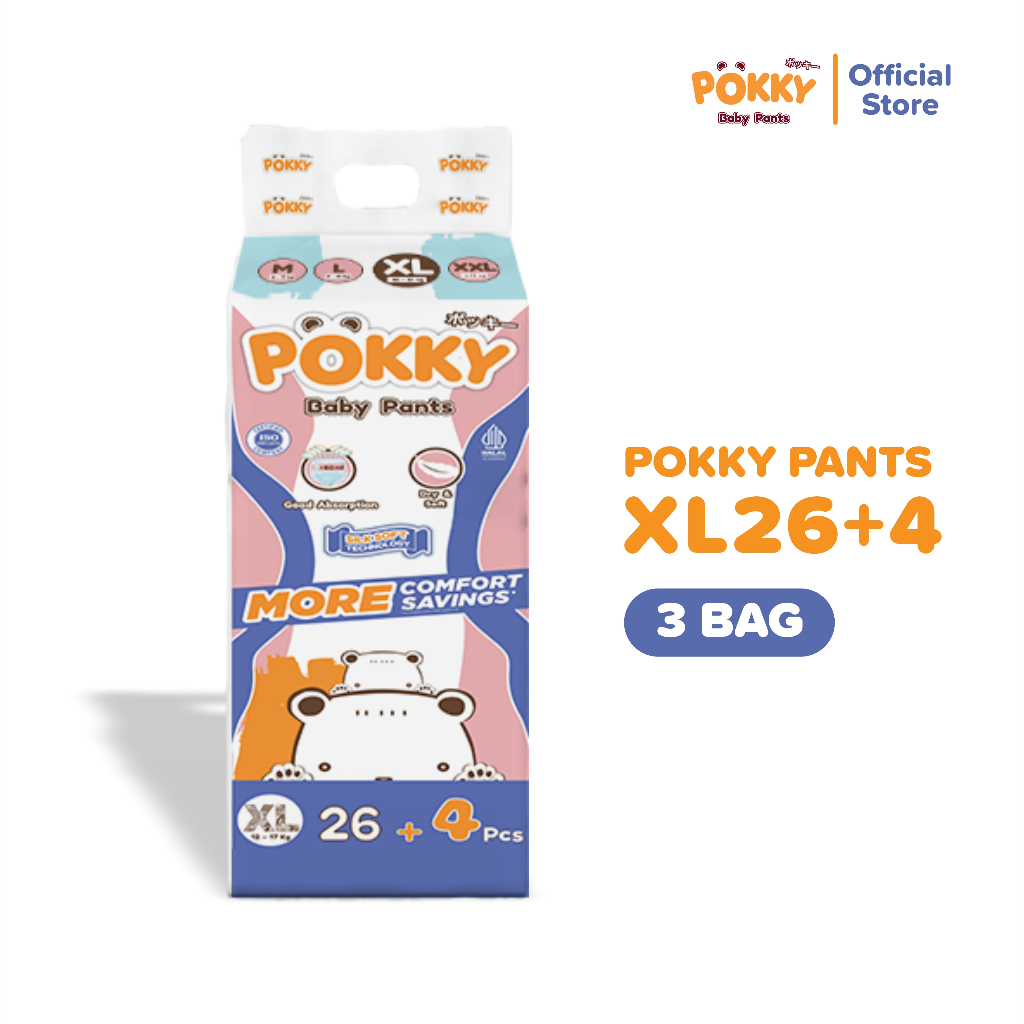 POKKY BABY PANTS PAMPERS POPOK CELANA BAYI XXL22+2 XL26+4 L26+2 M34+4 TRIPLEPACK TWINPACK UNISEX