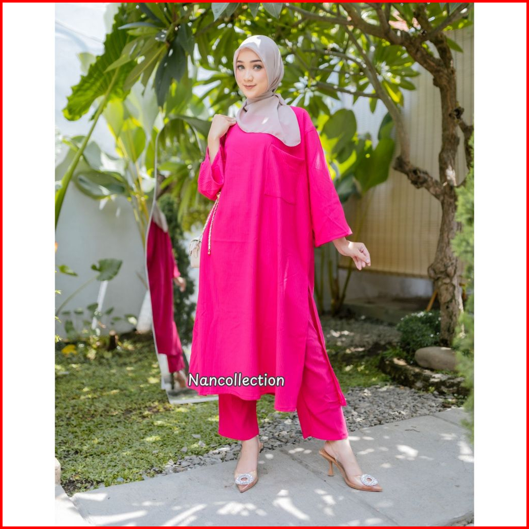 Nan X Gilda Priyadi - Setelan Long Tunik Kaos Knit Gemes Baggy Pants
