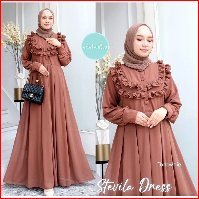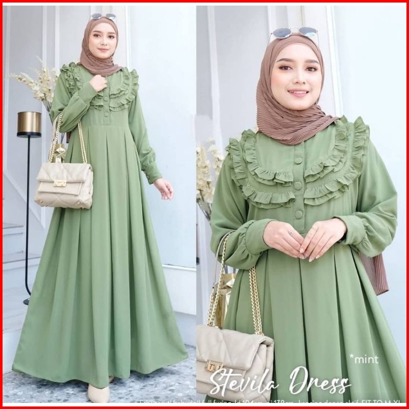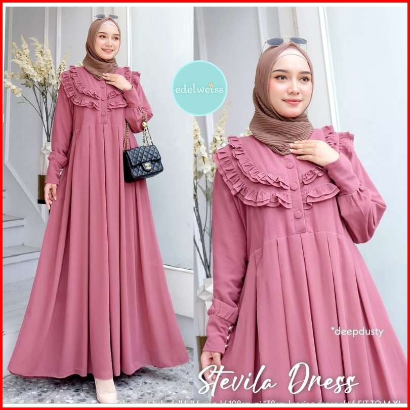 Stevila Dress Maxy Gamis Crinkle Airflow Kondangan Lebaran Muslimah