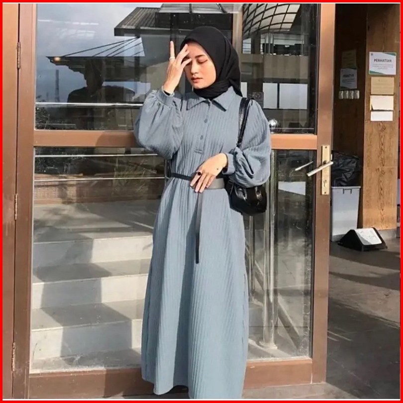 Am - Kirana Dress Gamis Oversize Wanita Free Tali Pinggang Knit Hornet Premium 572-7450
